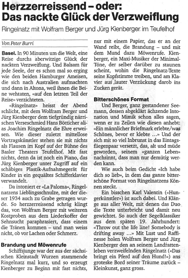 Wolfram Berger und Jürg Kienberger auf der Reise durch die aberwitzige, absurde und doch einfache, schlichte, ergreifend komische und berührende Poesie von Joachim Ringelnatz.