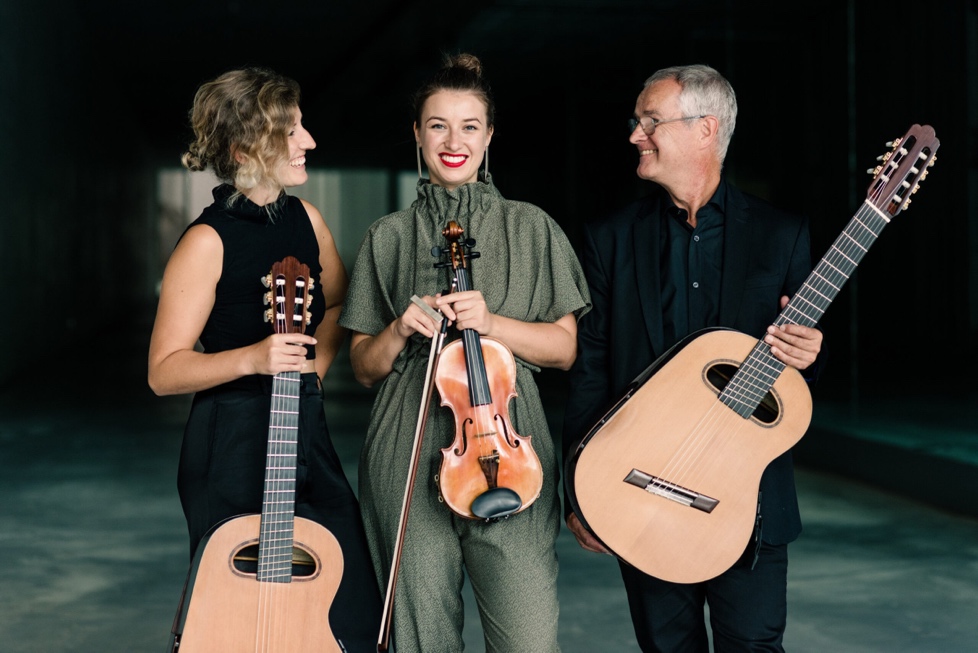 mit WOLFRAM BERGER und TRIO Gregorič featuring ARTHUR OTTOWITZ Mira Gregorič, Violine | violina Sara Gregorič, Gitarre | kitara Janez Gregorič, Gitarre | kitara Arthur Ottowitz, Mundharmonika / orglice